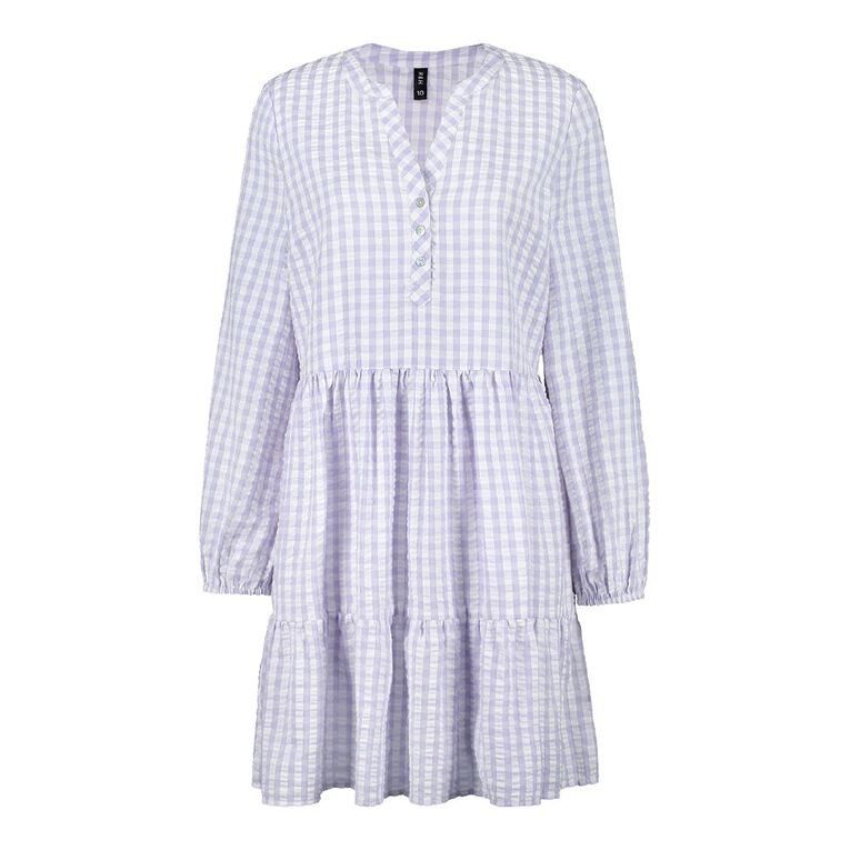 H H Women S Long Sleeve Tiered Gingham Dress Purple Light The Warehouse